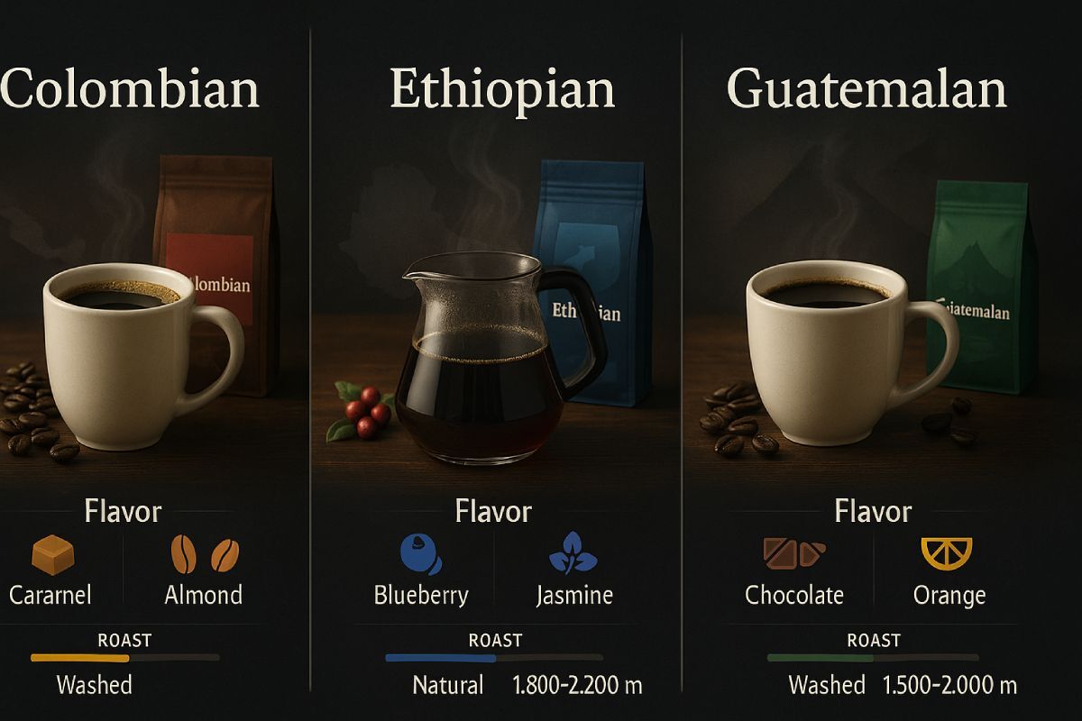 What’s the main difference between Colombian, Ethiopian, and Guatemalan coffee?
